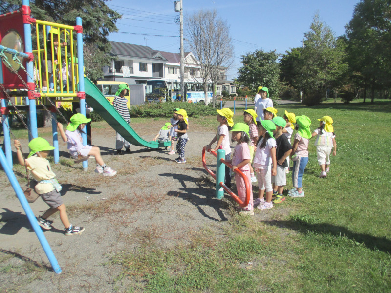 こんにちは☆運動会も終わり外あそびを満喫しています。 挑戦!!として1.5キロ離れた公園まで散歩へ出掛けてきました! 弱音を吐く子は一人も居なく、逞しくなった子ども達に成長を感じました。 次は発表会♪きっとまた一段と素敵な輝きを見せてくれるであろうと今から楽しみです(o^―^o)