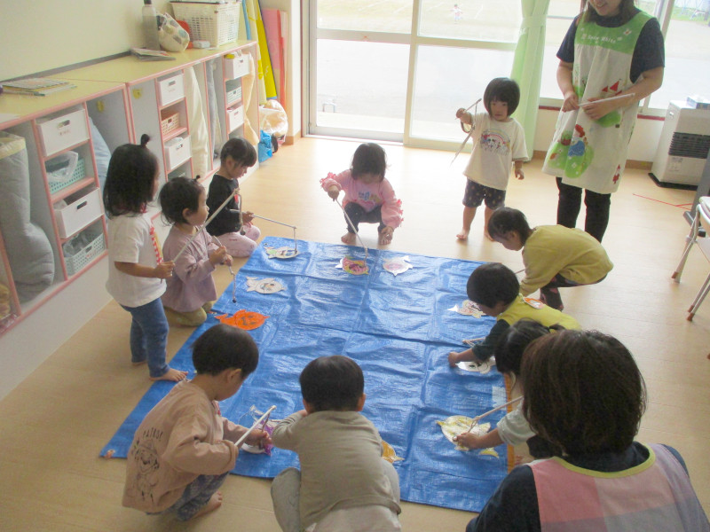 こんにちは!みかん組です☆今月から発表会の取り組みが本格的に始まりました!みかん組さんは、大好きなベイビーシャークを踊ります♪みんなで色塗りをしたベイビーシャークを使って、お部屋でサメ釣りにも挑戦して大盛り上がりでした!!秋になり外遊びも楽しんでいますよ!近くのつばめ公園に往復でお散歩にも行くことができ、歩く力もどんどんついています☻