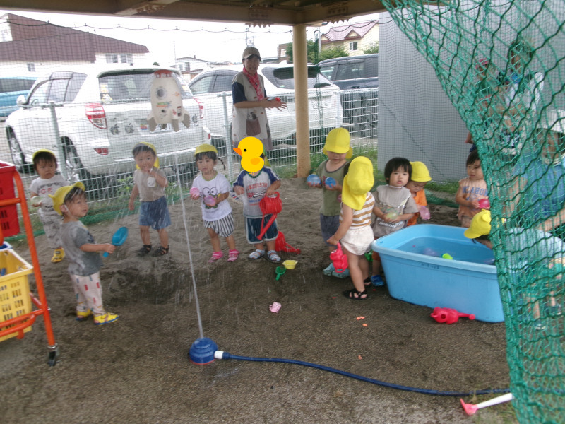 夏らしい暑さの中、みんなでお水を飲みながら“室内水遊び”や“外遊び”を思い切り楽しみました。その他にも、『夏』ならではのかき氷まつり♪ひんやり甘いかき氷に、みんな大喜び。笑い声が溢れるひと時になりました❤さぁ〜にじ組の夏はここからです★これからも水遊びや夏ならではの遊びを思い切り楽しみたいと思います!!