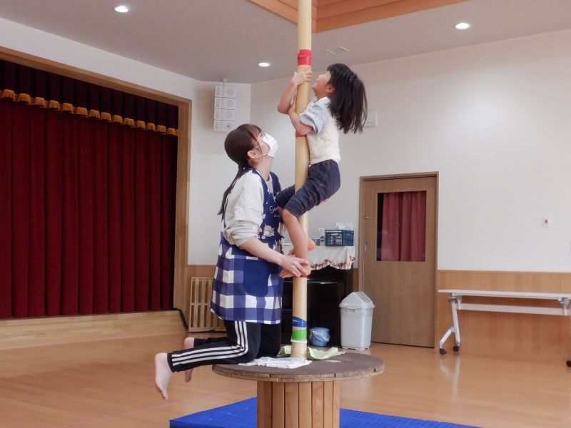 こんにちは!きりん組です!年長さんになることを今から楽しみにしている子ども達。6月の運動会に向けて竹登りの練習も始めました。暑い中年さんが毎日のように練習している姿を見て「すごい!」「かっこいい!」と憧れていたので、竹登りが出来る事を楽しみにしていましたよ。まだ怖いと感じる子もいますが、それでも先生に補助してもらいながら上をしっかり見つめ、一生懸命竹を登っていく姿がとても素敵です!