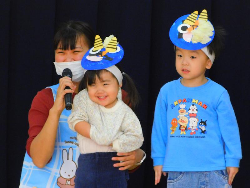 2月3日(火)、園内で節分行事を行いました。節分の由来についてのお話を聞いたり、節分の歌を歌ったり、自分たちで作った鬼のお面を紹介したりと、子どもたちは興味津々。素材や形が一つひとつ異なるお面は、どれも個性が光り、とても素敵でした。豆まきに使う“新聞紙豆”は、ぞう組さんがこども園のみんなのために心を込めて作ってくれました。憧れの年長さんのパワーが詰まった新聞紙豆は、まさに百人力です。「こうやって豆をまくんだよ」と、年長さんが見本を見せてくれたあと、太鼓の音とともに鬼が登場!鬼の姿に驚いて後ずさりする子、勇気を出して豆を投げる子、先生の後ろにそっと隠れる子など、さまざまな姿が見られました。やがて鬼の元気がなくなり、最後には「ごめんなさい」と謝って、お詫びにお土産を置いていってくれました。みんなの力で鬼を追い払い、こども園にたくさんの福を呼び込むことができました。