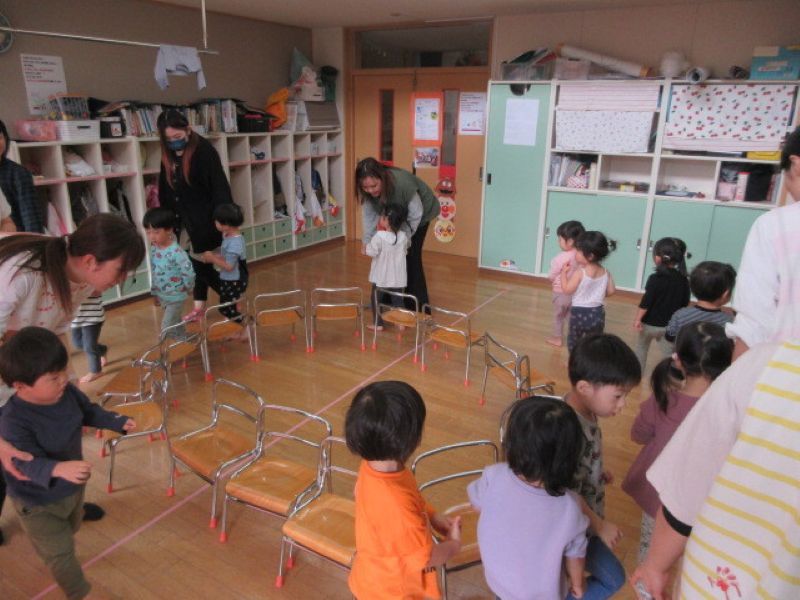 次は、いす取りゲーム。初めての子も多かったですが、「曲がとまったら座る」などルールをしっかり理解して楽しむ姿が見られました☆お家に帰ってからやる子もいたみたいですよ〜