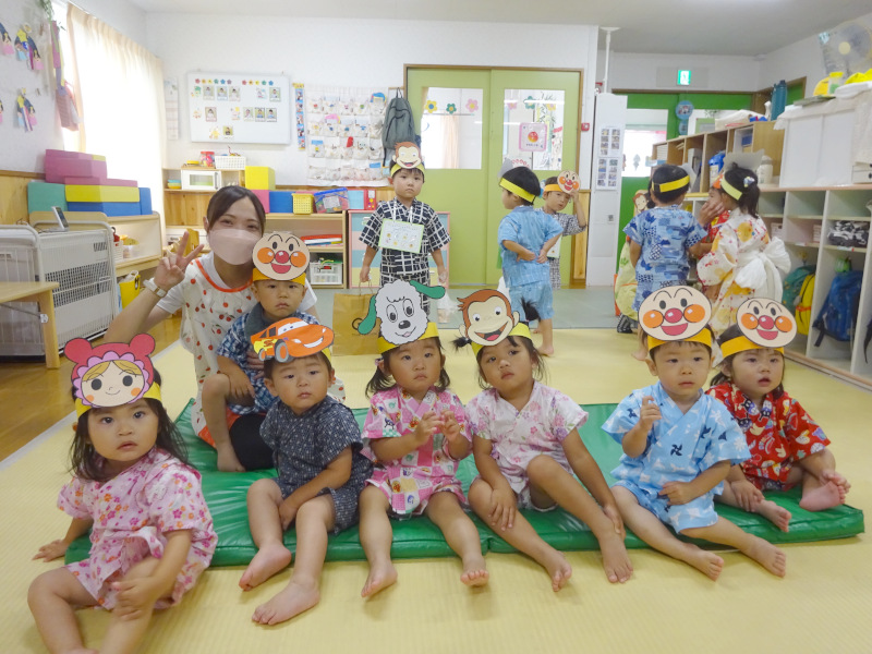 先日、保育園で七夕まつりを行いました☆みんなの甚平姿がとっても可愛くて、微笑ましい気持ちになりました♡ポップコーンができるところをジーっと見たり、お面屋さん・ヨーヨーすくい・スイカ割り・くじ引き等、たくさんの出店巡りをし、お祭り気分を味わいました♪その後はみんなでポップコーンを食べ、大満足の子どもたちでしたよ。