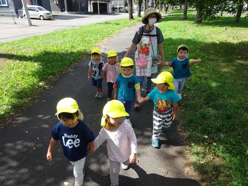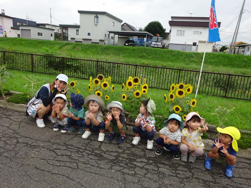 「これさくらんぼさんでとれたきゅうり?」と聞いてきます。きゅうりが好きになった子も増えました。どんな年齢でも何かを育てるというのは大事な事なのですね!!日中はまだまだ暑い日が続いていますが、水分補給をしながら毎日お散歩に出掛けて楽しんでいるさくらんぼさんです♬