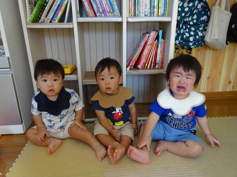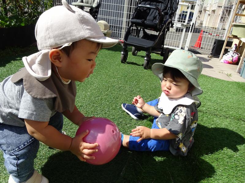 すもも組は9月から1名お友だちが増えてさらに賑やかになりました。お友だちの様子も気になるし、「あ!抱っこしてもらってる!ぼくも〜!」とか、お友だちが遊んでいる玩具が気になって「それ、ちょうだい!」って取っちゃうことも。(笑)