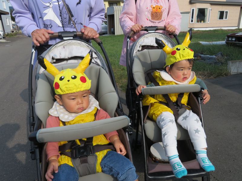 10月31日(金)に青い鳥保育園のハロウィンがありました!すもも組はピカチュウ、ひめりんご組はかぼちゃのオバケ、さくらんぼ組はてんとうむしの仮装をしました!まず全クラスお部屋に集まり、衣装の見せ合いをしましたよ。その後、今年は交流館ではなく近所を練り歩きしました!車を運転している方や近所の方が手を振ってくれ、「かわいいね!!」とたくさん言われる子ども達でした。