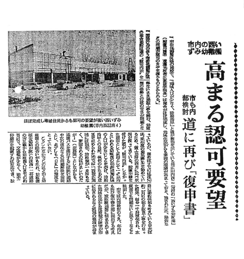 1. 昭和51年11月28日 西いずみ幼稚園 認可望む声増大 2. 昭和51年12月22日 市内西いずみ幼稚園 市も内部検討 3. 昭和52年01月13日 幕別町に幼稚園 幕別葵幼稚園 4. 昭和52年02月12日 認可の公算強く 西いずみ幼稚園 5. 昭和52年04月06日 幕別葵幼稚園 開設、大幅に遅延か 6. 昭和52年07月30日 帯広東幼稚園 園舎の新築始まる 7. 昭和52年09月17日 全室にテレビ 清水 二つ目の幼稚園建設 8. 昭和52年09月29日 「わかば幼稚園」認可 市内で14番目