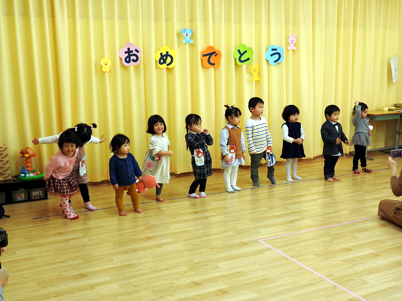 あおいキッズハウスの集団で関わることできらきらさんは沢山の経験をし、沢山のことを学んだことと思います。幼稚園や保育園に行ってもこれまでの経験を生かして元気いっぱい過ごして、笑って泣いて喜んでいろんなことを経験しながら大きく成長していってくださいね!!お母さんも元気いっぱい「いってらっしゃい!」をして、頑張って帰ってきたら、たくさん褒めてあげてくださいね。 本当に元気いっぱいで、みんなのことが大好きです!!みんなと離れるのは寂しいけれど、先生方はみんなのこと応援しています!!! これからも色んなことに挑戦して、時には挫折してまたチャレンジして、また壁を乗り越えて 強くたくましい立派な大人になってください!!たまには、あおいキッズハウスに顔出してね^^