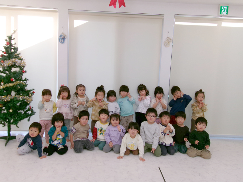 11月に雪が降り、すっかり冬モードの子どもたちです。「ゆきある!」「サンタさんくるかな?」「サンタさんに○○たのんだの!」と少しずつクリスマスに染まりつつあります(^^)