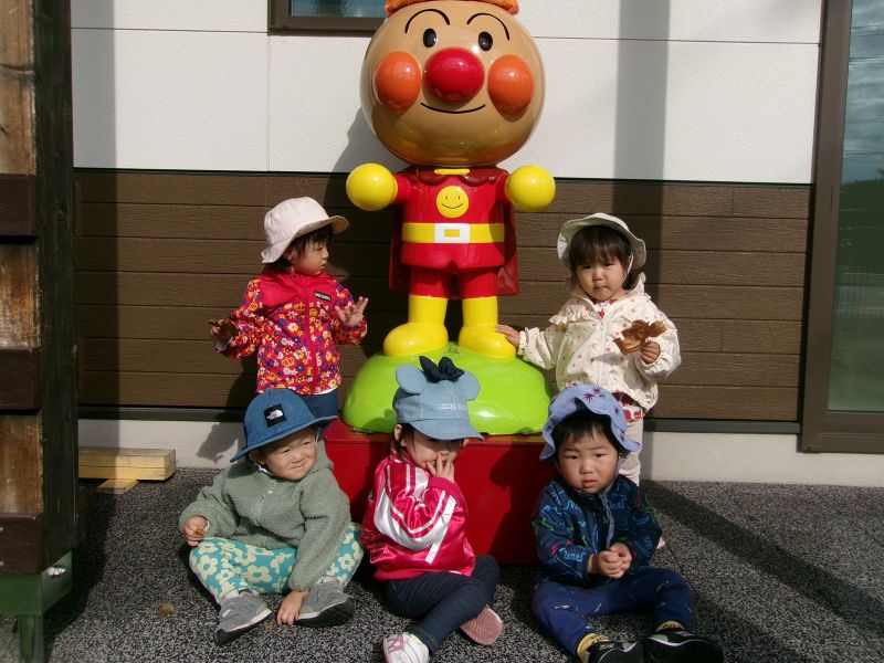 園庭にあんぱんまんの像が設置され、子どもたちは大喜び!お散歩の行き帰りに「いってきまーす」「あんぱんまんただいまー」と嬉しそうに声を掛ける姿が見られます。子どもたちにとって新しいお友だちができたようで、毎日あんぱんまんとのふれあいを楽しんでいます。