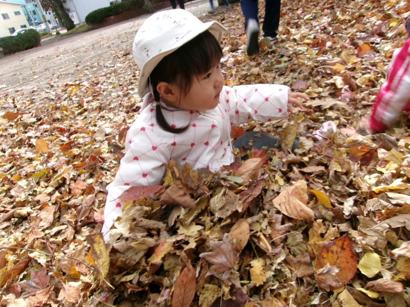 すっかり朝晩だけではなく日中も冷え込む日が増えてきましたが子ども達は寒さに負けず元気いっぱい遊んでいます!!道端に枯葉が沢山落ちていると全力でその上を歩きカサカサと音が鳴るのを楽しんだり、お友だちや先生を追いかけてみんなで落ち葉投げをして、全身落ち葉だらけで帰ることもしばしばあります!これからも身体を沢山動かしながら元気に過ごしたいと思います!