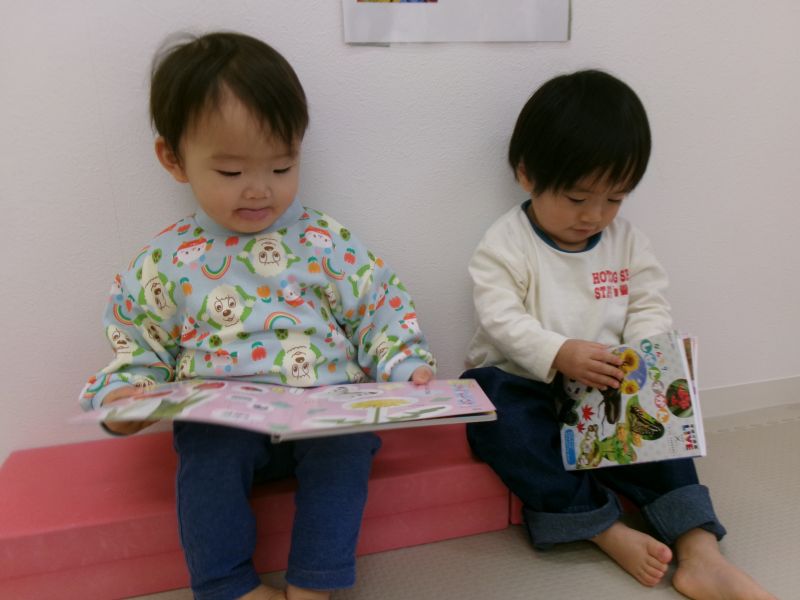 お正月休みが終わり、可愛い笑顔と共にイヤイヤがパワーアップし元気に登園してくれました。「オムツかえよ〜!」と声を掛けると聞こえていないふりをしながら絵本を開いてみたり、ニヤニヤと笑みを浮かべながら「やや〜!」と言ってみたりと着々とイヤイヤ期に突入していますが、自分の意思がはっきりとしてきて可愛い成長だな〜と嬉しさもあります。イヤイヤしながらもお友だちと給食が大好きな子どもたち、吸い込まれるようにくっつき遊ぶときもいたずらするときも常に一緒です。いつの間にかおもちゃの貸し借りも「て!て!(かして)」「とお〜(ありがとう)」と成り立っていて毎日成長中です。