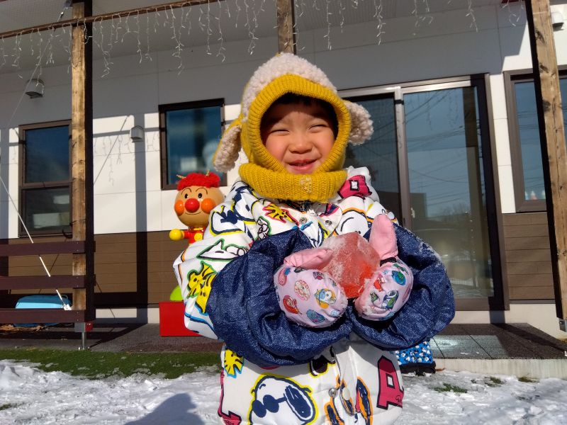 年末年始のお休みが明けて、久し振りにお友だちに会えて嬉しそうなたいこぐみさん!!休み中の楽しかったことをお友だちや先生に沢山教えてくれました!!お家で楽しいお休みを過ごしたようですね!!今月は雪が少なく、気温も低い日が続きなかなか外で遊べなかったのですが「雪遊びするよ!」と伝えると大喜びのたいこぐみさん!雪の中から『氷の塊』を見つけ、「キラキラで綺麗」と興味津々でした。そこで、先日みんなで氷作りに挑戦!!牛乳パックに水と好きな色の食紅・木の実を入れて、どんな氷ができるのか、本当に凍るのか…ワクワクしながら作っていました。次の日…見てみると…大きくてキレイな氷ができていて大興奮!!自分だけの氷に大満足のみんなでした!今度は色々な形の入れ物で実験してみようと思います!1月に入り卒園まであっという間ですが、一日一日を大切に過ごし、たいこぐみとしての思い出をこれからも沢山作っていきたいと思います!!
