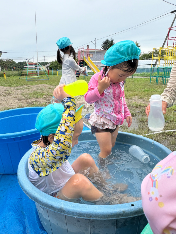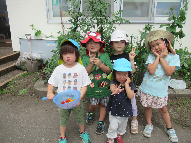 毎日暑い日が続いていますね。水遊び、虫探し、夏野菜の収穫など真夏の暑さに負けることなく
