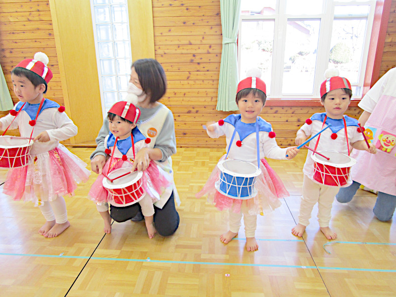 こんにちは。ほし組です‼19日に発表会が行われました。練習の時から、大好きなアンパンマンの曲に合わせて、太鼓も踊りも楽しんでくれていました♬
