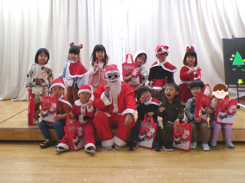こんにちは。つき組です。発表会が終わり、また1つ成長した子ども達。12月は子ども達が楽しみにしている行事が沢山。中でも子ども達にとっての一大イベント『クリスマス会』が先日行われました。みんなで歌や踊りを楽しんだり、クイズに答えたり、お部屋で給食パーティーもしました。サンタさんも来てくれて一人一人プレゼントをもらってニコニコの子ども達。とっても楽しい思い出に残る一日になりましたよ。