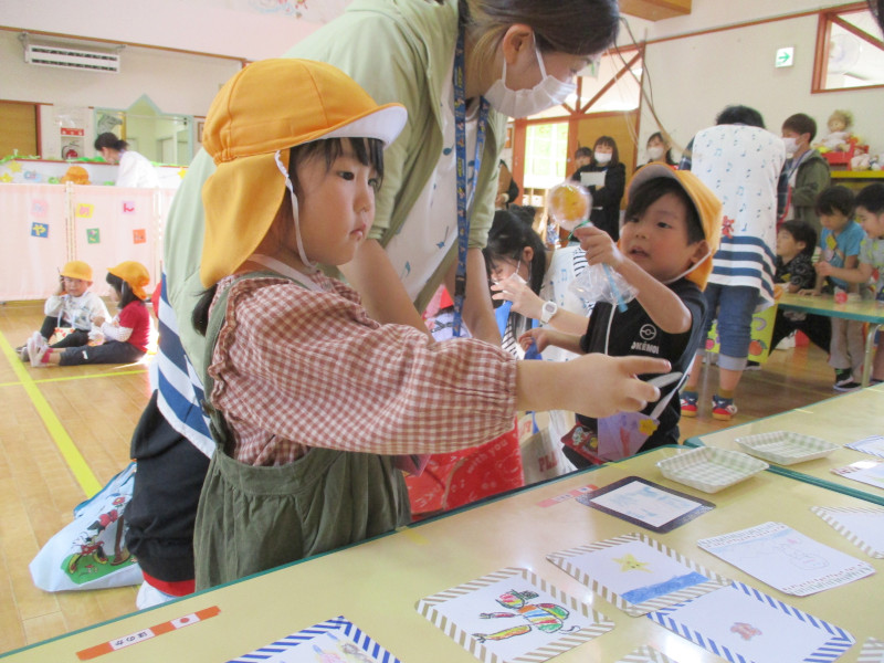10月11日にお店屋さんごっこを行いました。 各クラスで品物を考え、当日に向けて一生懸命準備をしてきた子どもたち。前日に行ったお店紹介では、他のクラスの素敵な商品を見て何を買うか楽しそうにお話していましたよ(*^-^*)