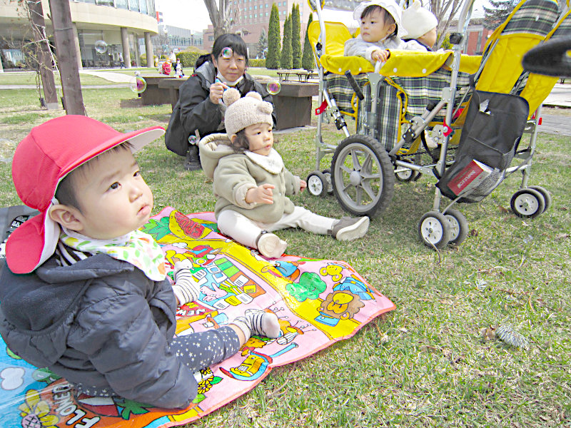 1人が入園しました。3月生まれの1歳児ぶどうぐみの3人と、合わせて4人のおともだちで楽しく過ごしています。