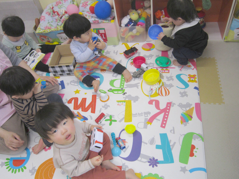 行き慣れない場所に行ったり、見慣れないお友達や大人に会っても泣いたり、人見知りすることもなく、一緒にリズムやわらべうた遊びが出来た事に成長を感じた一日でした。