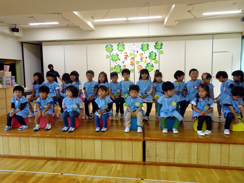 8月22日(木)、8月生まれのお誕生会が行われました。 8月に誕生日を迎える子は24名。まず、1人ずつ「○才になりました」と自己紹介があり、先生からプレゼントを受け取りました。またその後、みんなから「ハッピーバースデー」の歌のプレゼントがあり、最後に年長の先生方から「手品」の発表があり、お誕生会は楽しく終了しました。