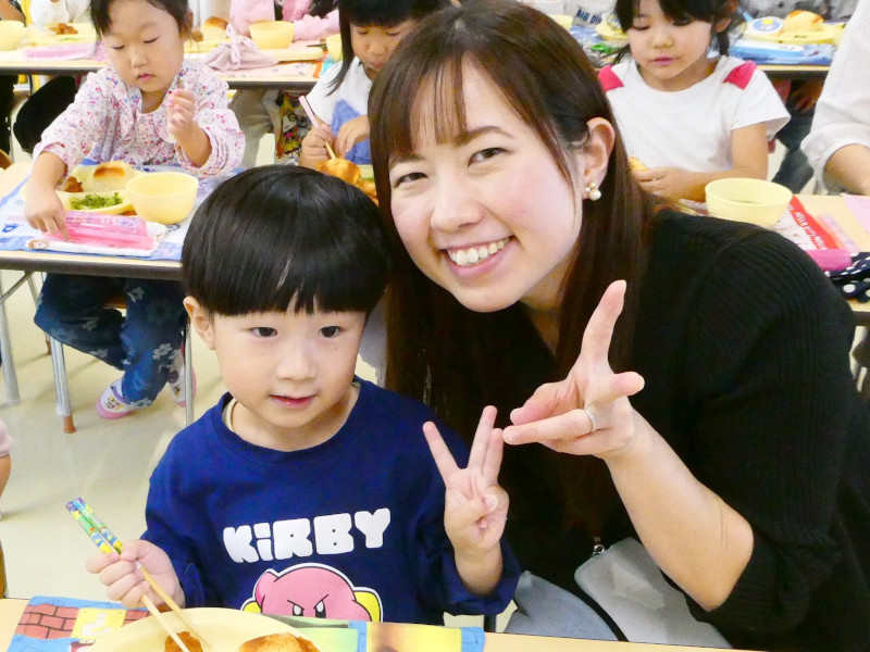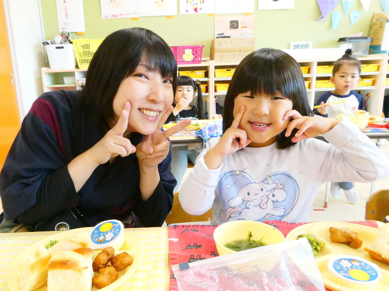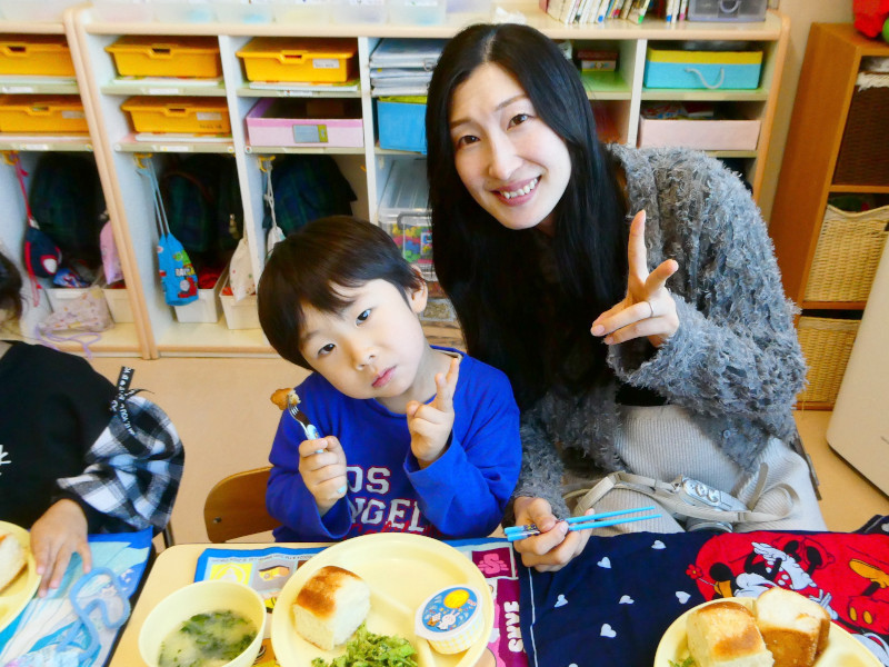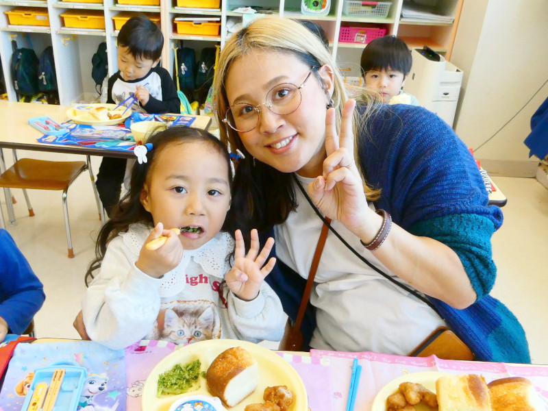 誕生会後は,10月生まれさんの給食試食会を行いました。「ベビーパン」「なすミートじゃがいもニョッキスープ」「唐揚げ」「ブロッコリーのしょうが和え」「十五夜デザート」の栄養たっぷり,バランスばっちりな美味しい給食を親子で楽しみながら,和やかに誕生会&試食会は終了しました。