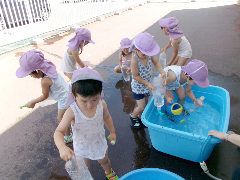 先日、みんなが大好きな水遊びをしました!「水遊びするよ〜!」と