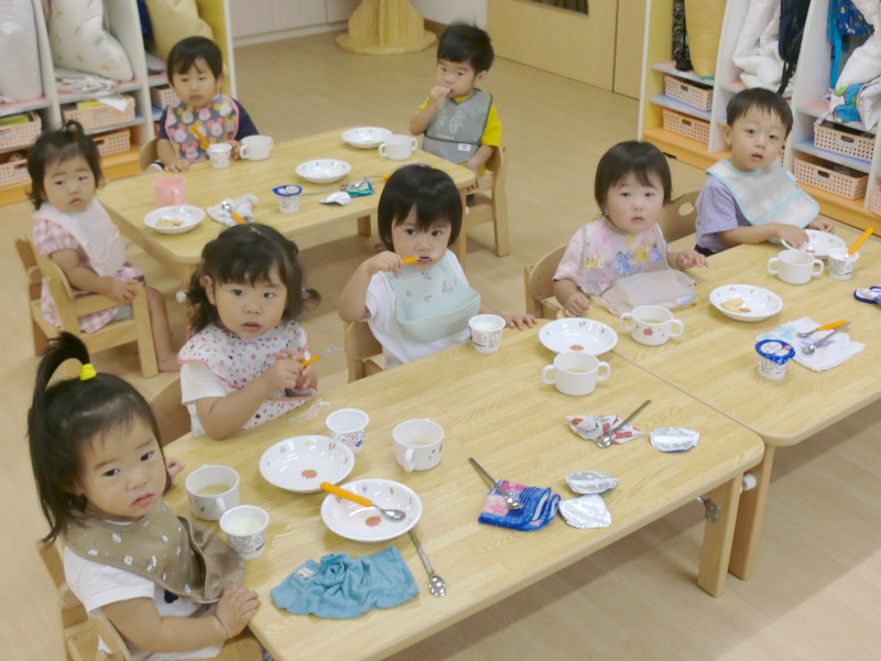2学期が始まりました!お盆明け、元気いっぱいの皆に会えて嬉しいです♪2学期は運動会や発表会なの大きな行事があります。早速、運動会に向けた競技や入場行進の練習がスタートしていますよ!一人ひとりが無理なく楽しんで参加できるように取り組んでいきたいと思います。運動会練習の後はお部屋で水分補給をしたり絵本を読んだりして、ゆったりタイムです☺