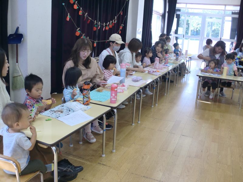 こんにちは☆気温も心地良い季節になってきたので、午後保育でもおやつ後には園庭に出て元気いっぱい遊んでいます。10月といえばハロウィン!という事でハロウィン製作もしました。異年齢なので、小さい子も楽しめるようにオレンジの花紙を手でお団子にしてカボチャを作りました。力の入れ方や顔のパーツの貼り方で、個性豊かな作品が出来上がりました☆彡