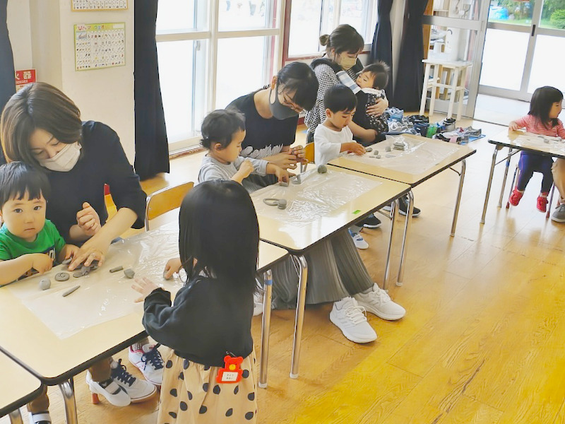週1回、午前10時から11時30分まで、手遊びやリズム、遠足やプール遊びなど季節を感じたり、母子で