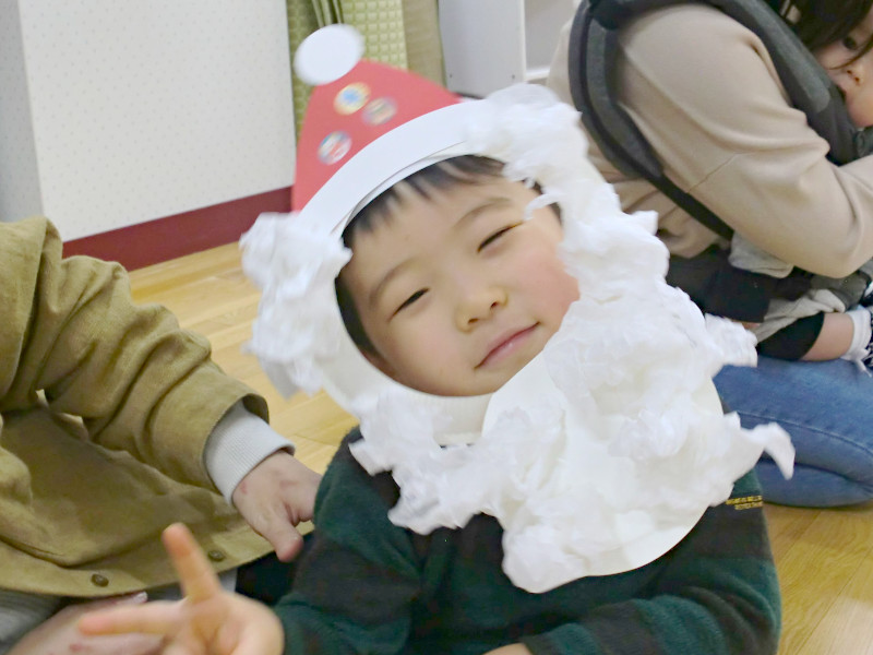 いつものホールとはちょっぴり違うクリスマスの雰囲気に目をきらきらさせていました。みんなで大好きなクリスマスの踊りをおどり、クリスマス会がスタート!ゲームあそびでは、お父さんやお母さんと一緒に楽しく参加してくれたぱちぱちさん、はじめて取り組むゲームのお話にもしっかりと耳を傾けて聞いてくれる姿に、春からの心の成長も感じる事ができました♪