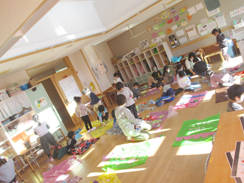 11月に入り、発表会の練習に頑張って取り組んでいる子ども達。発表会の衣装も、自分達でカラーポリ袋に、装飾をして作っています。リボンを作ったり、好きな模様を自分で画用紙を切って貼って、楽しく作業をしていました。今から発表会も楽しみにしている子ども達!!どんな姿を見せてくれるのかも楽しみにしています。