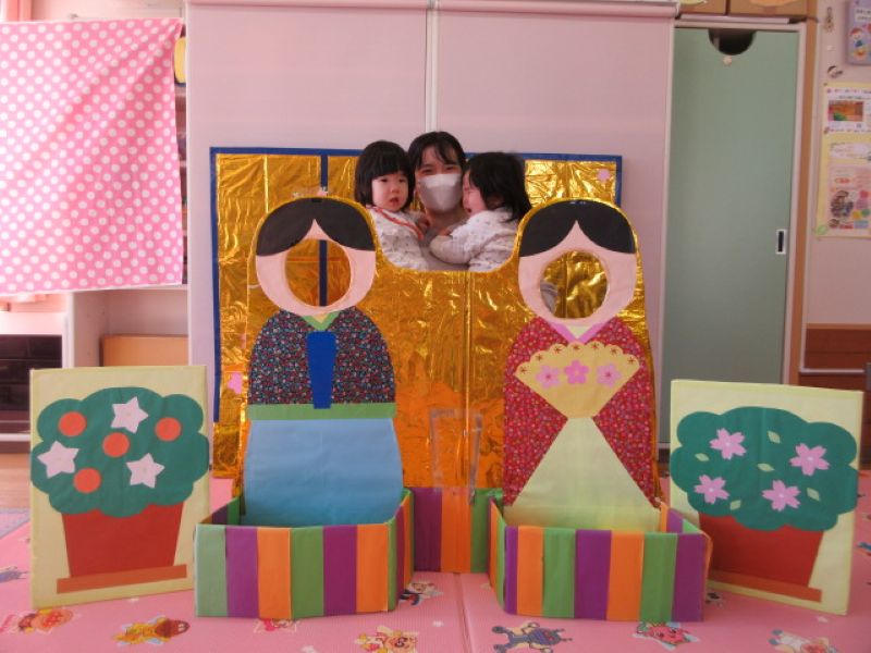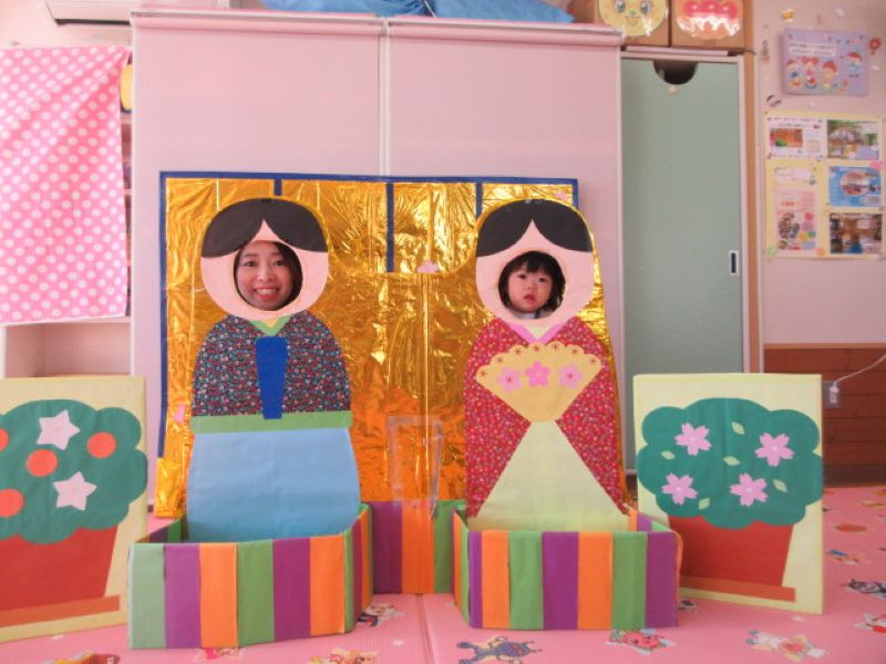 この日の、ひなまつりはケーキ作りをしました。生クリームを塗り、いちごや桃・カラースプレーで飾り付けをして、世界に一つだけのオリジナルケーキを作りましたよ。作っているときから、早く食べたくて味見をしている子や、真剣なまなざしでクリーム塗りをする子・・・楽しい時間はあっという間に過ぎて、できたケーキはお持ち帰りしましたよ!